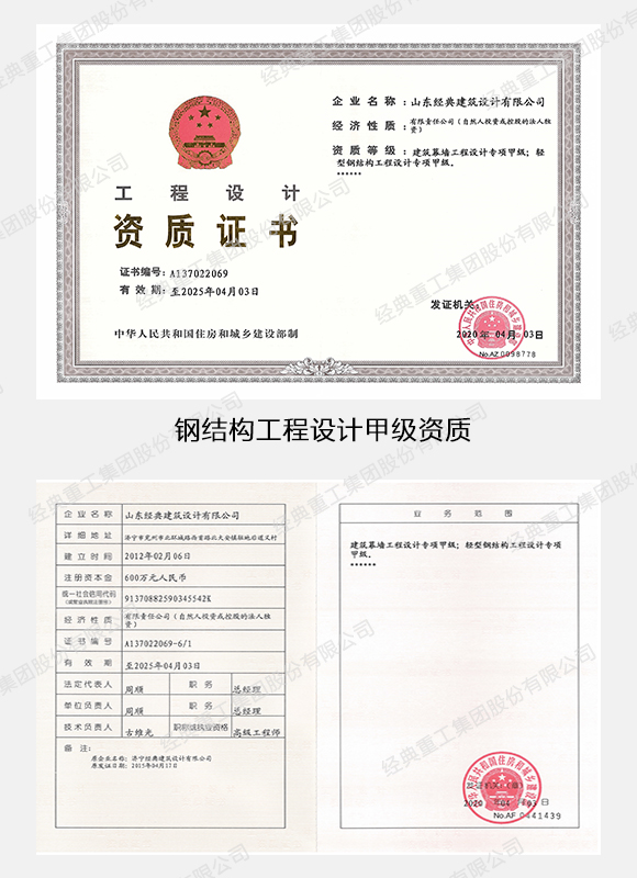 • 鋼結(jié)構(gòu)工程設(shè)計(jì)甲級(jí)資質(zhì)