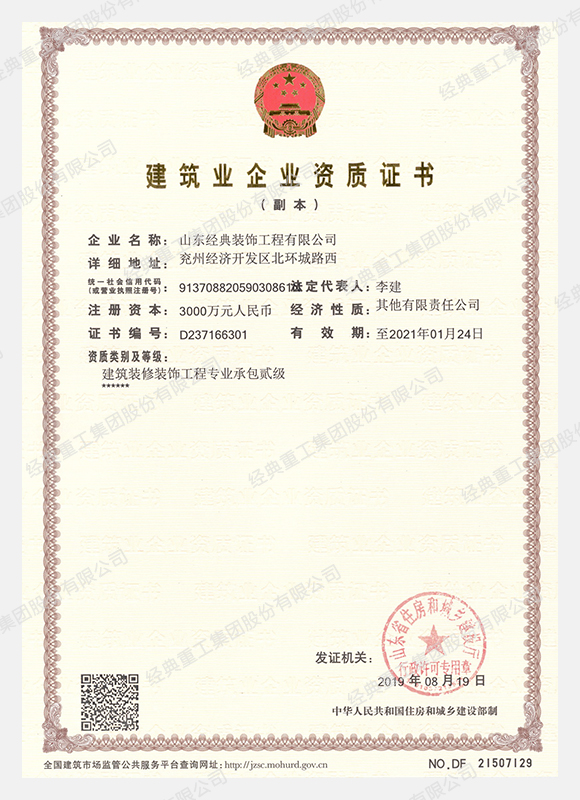 • 建筑裝修裝飾工程專(zhuān)業(yè)承包貳級(jí)
