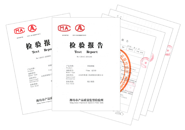 2014年9月以來,山東省質(zhì)監(jiān)局和有關(guān)質(zhì)檢機(jī)構(gòu)對全省制造業(yè)產(chǎn)品質(zhì)量合格率進(jìn)行了統(tǒng)計調(diào)查,省質(zhì)監(jiān)局委托濰坊市產(chǎn)品質(zhì)量監(jiān)督檢驗所依據(jù)《熱軋鋼板產(chǎn)品質(zhì)量統(tǒng)計調(diào)查合格判定準(zhǔn)則》、JGJ81-2002、GB/T288.1-2010、GB/T229-2007、GB/T4340.1-2009、GB/T4336-2002對經(jīng)典集團(tuán)兩種型號的焊接鋼板進(jìn)行了抽樣檢驗,檢驗結(jié)論為合格。