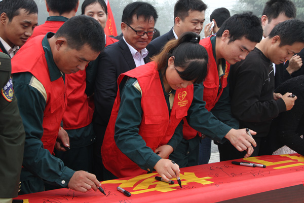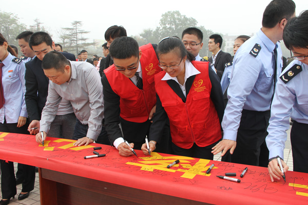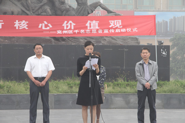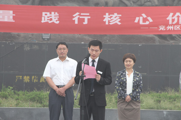 儀式由王仁娜副區(qū)長(zhǎng)主持。區(qū)委宣傳部副部長(zhǎng)邢衛(wèi)紅宣讀了《兗州區(qū)弘揚(yáng)社會(huì)正能量踐行核心價(jià)值觀倡議書》。集團(tuán)公司志愿者卞中凱作為全區(qū)企業(yè)屆代表作了表態(tài)發(fā)言。儀式上頒發(fā)了活動(dòng)宣傳書籍和資料。初建偉部長(zhǎng)作了重要講話?;顒?dòng)最后,廣大志愿者們?cè)诨顒?dòng)條幅上鄭重簽下了自己的名字。