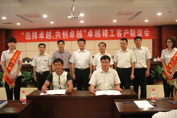 會議期間,卓越精工集團有限公司營銷部王世峰經(jīng)理與沂水經(jīng)銷商張學(xué)好現(xiàn)場簽訂了特約經(jīng)銷商協(xié)議。