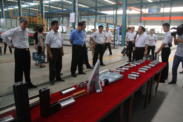 在觀摩會現(xiàn)場,與會領(lǐng)導(dǎo)首先聽取了劉董事長關(guān)于企業(yè)發(fā)展情況的匯報,隨后深入公司年產(chǎn)10萬噸高端鋁型材的生產(chǎn)車間,并現(xiàn)場聽取了項目負(fù)責(zé)人的情 況介紹。通過實(shí)地觀摩和聽取匯報,觀摩團(tuán)領(lǐng)導(dǎo)對我公司能夠按照科學(xué)發(fā)展觀和區(qū)委區(qū)政府關(guān)于跨越發(fā)展的總要求,堅持解放思想,抓住機(jī)遇,高點(diǎn)定位,高點(diǎn)建設(shè),開拓進(jìn)取,攻堅破難,加快發(fā)展的做法給予充分肯定,并對我公司生產(chǎn)經(jīng)營所取得的成績給予高度評價和贊賞。
