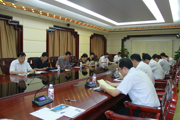 觀摩團(tuán)領(lǐng)導(dǎo)在四德講堂(集團(tuán)公司會(huì)議中心)聽取集團(tuán)董事長(zhǎng)苗樹文詳細(xì)匯報(bào)