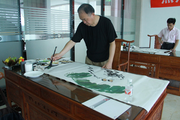 山東美術(shù)家協(xié)會(huì)會(huì)員,兗州市美術(shù)家,書(shū)法家,攝影家協(xié)會(huì)主席李寶亮;兗州市書(shū)法家協(xié)會(huì)副主席何愛(ài)民等10多位書(shū)畫(huà)家,齊聚一堂,揮毫潑墨,進(jìn)行了書(shū)畫(huà)表演和精心創(chuàng)作。書(shū)畫(huà)大師們共展出近70幅精品力作,作品藝術(shù)形式多樣、內(nèi)容取材各異,具有較高的藝術(shù)水平。 這次書(shū)畫(huà)聯(lián)誼筆會(huì)給集團(tuán)公司留下了不可多得書(shū)畫(huà)墨寶,將由經(jīng)典集團(tuán)公司永久珍藏。