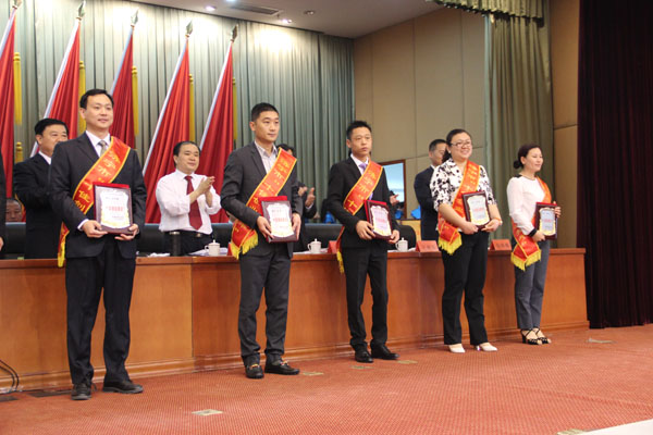 市委領(lǐng)導為周超董事長頒發(fā)獎牌(中間)