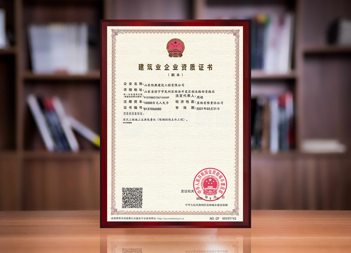 山東經(jīng)典建設(shè)工程有限公司榮升建筑工程施工總承包壹級資質(zhì)。