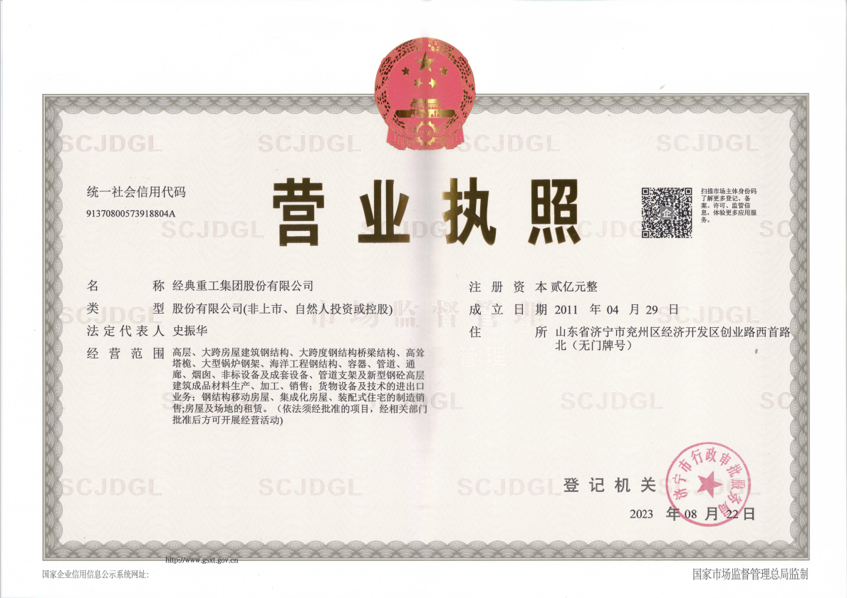 公司名稱“山東經(jīng)典重工集團(tuán)股份有限公司”變更為“經(jīng)典重工集團(tuán)股份有限公司”。