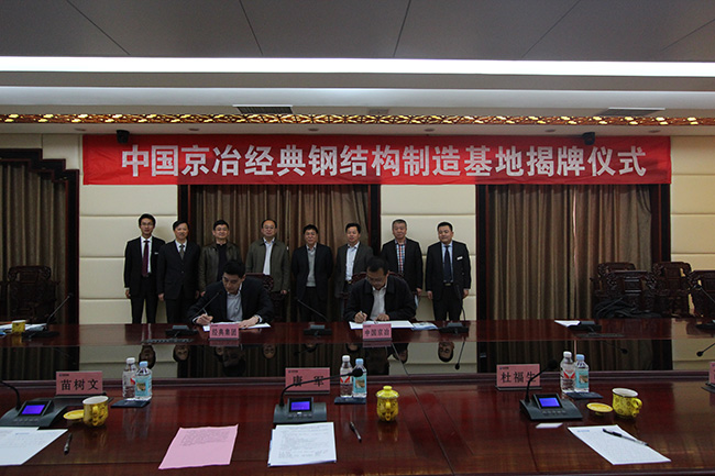 揭牌儀式前,中國京冶鋼結(jié)構(gòu)事業(yè)部常務(wù)副總經(jīng)理常好誦和經(jīng)典集團(tuán)董事長苗樹文在公司三樓會(huì)議中心共同簽訂了戰(zhàn)略合作框架協(xié)議。中國京冶與經(jīng)典集團(tuán)將本著平等、誠信、互惠、共贏的原則,利用各自優(yōu)勢在鋼結(jié)構(gòu)建筑領(lǐng)域建立長期戰(zhàn)略合作伙伴關(guān)系,在高層、超高層鋼結(jié)構(gòu)建筑、大跨度鋼結(jié)構(gòu)建筑、鋼結(jié)構(gòu)住宅產(chǎn)業(yè)化、鋼結(jié)構(gòu)工程設(shè)計(jì)施工制造管理、節(jié)能環(huán)保維護(hù)系統(tǒng)等領(lǐng)域開展項(xiàng)目工程合作、科研與技術(shù)合作。