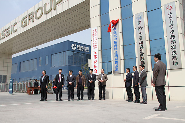 4月17日上午,經(jīng)典集團(tuán)舉辦中國京冶經(jīng)典鋼結(jié)構(gòu)制造基地揭牌儀式。中國鋼結(jié)構(gòu)協(xié)會(huì)秘書長侯兆新,兗州區(qū)委常委、工業(yè)園區(qū)黨工委副書記、管委會(huì)副主任唐軍共同為基地揭牌。中國京冶工程技術(shù)有限公司鋼結(jié)構(gòu)事業(yè)部常務(wù)副總經(jīng)理常好誦,副總經(jīng)理桂宇飛,中國鋼結(jié)構(gòu)協(xié)會(huì)副秘書長李寧,行業(yè)事務(wù)部部長戴長河,經(jīng)典集團(tuán)董事長苗樹文,總經(jīng)理杜福生,生產(chǎn)總經(jīng)理王忠策,工會(huì)主席高建國,企劃部經(jīng)理史振華等參加了揭牌儀式。