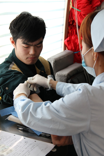 經(jīng)過閱讀學(xué)習(xí)獻(xiàn)血基本常識,填寫登記表,例行體檢幾個環(huán)節(jié)后,志愿者們按順序登上了獻(xiàn)血車。他們在獻(xiàn)血時個個積極勇敢,情緒穩(wěn)定,臉上洋溢著自豪的笑容,獻(xiàn)血結(jié)束后,在現(xiàn)場領(lǐng)取了濟寧市中心血站發(fā)放的無償獻(xiàn)血證。本次獻(xiàn)血活動有166名職工自愿報名參加,其中趙康、吳振興等志愿者更是有多次無償獻(xiàn)血的經(jīng)歷。