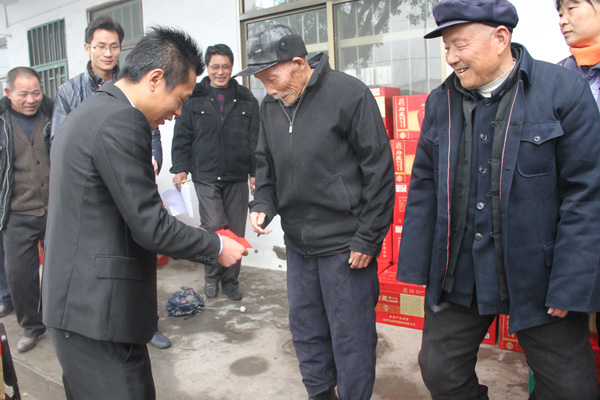 盡管天下著雨,經(jīng)典集團(tuán)負(fù)責(zé)人每到一處,都與老人們親切握手,詳細(xì)詢(xún)問(wèn)老人健康狀況、家庭收入、子女就業(yè)等有關(guān)情況,并代表公司給柳溝村老人們拜年,祝愿他們身體健康,闔家幸福,羊年吉祥。