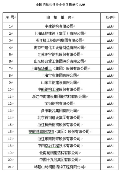 2014年10月26-27日,在南京國(guó)際會(huì)議中心隆重舉辦的中國(guó)鋼結(jié)構(gòu)協(xié)會(huì)成立三十周年紀(jì)念大會(huì)暨六屆四次理事會(huì)擴(kuò)大會(huì)議上,山東經(jīng)典重工集團(tuán)股份有限公司獲得首批全國(guó)鋼結(jié)構(gòu)行業(yè)AAA級(jí)信用企業(yè)。
