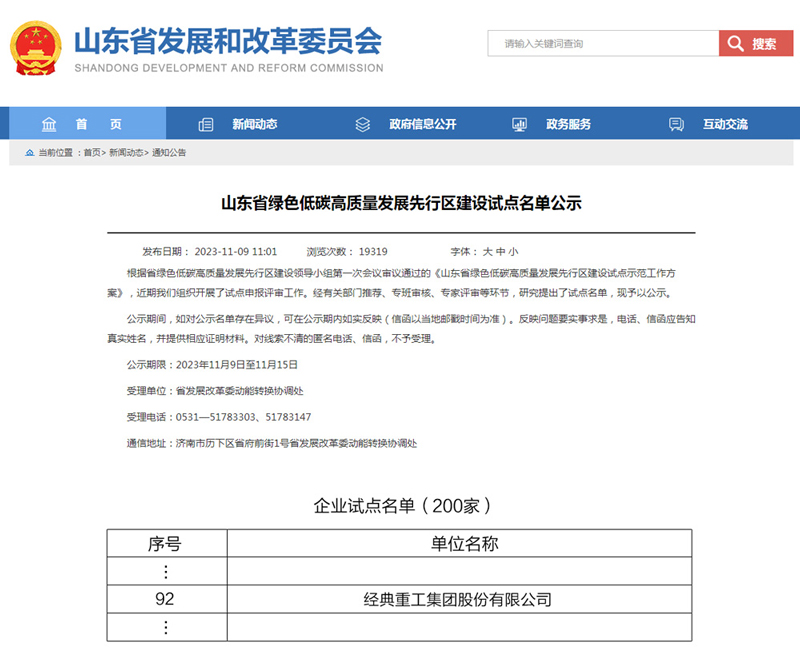 近日,山東省發(fā)展和改革委員會公示了山東省綠色低碳高質量發(fā)展先行區(qū)建設試點名單,經典集團上榜企業(yè)試點名單。