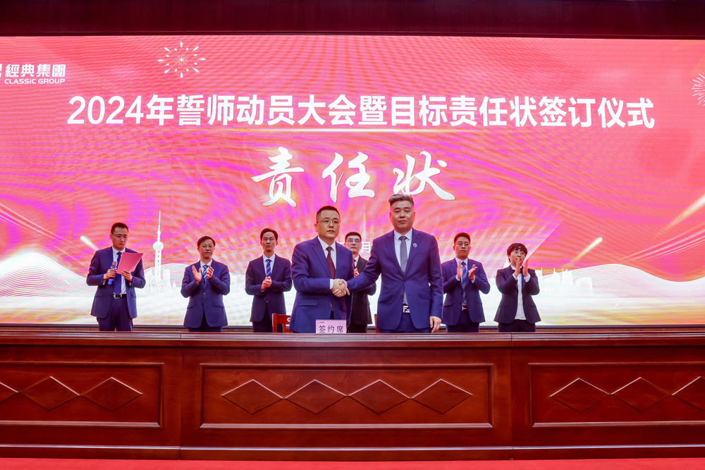 號角聲動,誓言鏗鏘。本次大會的成功召開,標(biāo)志著經(jīng)典集團(tuán)踏上了2024年新的征程,賦予了新的使命和挑戰(zhàn)。集團(tuán)上下要緊緊圍繞公司發(fā)展的總戰(zhàn)略要求,增強(qiáng)“舍我其誰”的使命感、“時不我待”的緊迫感,以更加昂揚(yáng)的姿態(tài)、更加團(tuán)結(jié)的力量乘勢而上、接續(xù)奮斗,競相發(fā)展、全面進(jìn)位,全力以赴推動集團(tuán)高質(zhì)量發(fā)展加快突破,共同開創(chuàng)經(jīng)典集團(tuán)更加美好的未來!