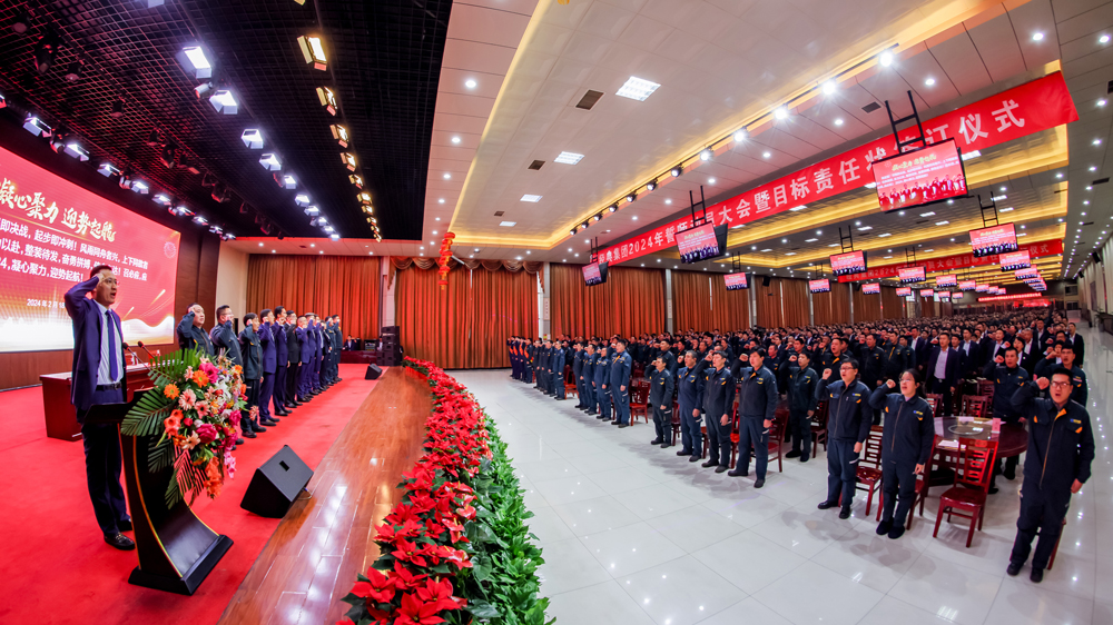 團(tuán)結(jié)凝聚力量,奮斗鑄就偉業(yè)。2月18日上午,經(jīng)典集團(tuán)2024年誓師動員大會暨目標(biāo)責(zé)任狀簽訂儀式在職工會議中心成功召開,動員集團(tuán)各部門錨定2024年各項目標(biāo)任務(wù),統(tǒng)一思想、凝心聚力,全力以赴抓好落實,確保集團(tuán)高質(zhì)量發(fā)展再上新臺階。集團(tuán)董事會、集團(tuán)公司分管負(fù)責(zé)人、各單位負(fù)責(zé)人、工程項目經(jīng)理、各單位職工代表參加了會議。