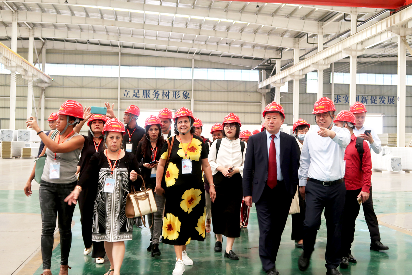 該研修班一行先后參觀了經(jīng)典集團凱思諾智能化生產(chǎn)線、中冶智能化生產(chǎn)車間以及高端裝配式建筑集成房屋項目等。在座談會上,集團副總經(jīng)理兼生產(chǎn)總工張琦對研修班學員一行的到來表示熱烈的歡迎,詳細介紹了集團發(fā)展歷程、生產(chǎn)經(jīng)營、企業(yè)文化建設等,并就集團產(chǎn)業(yè)布局和外貿(mào)工作開展情況進行了重點介紹。